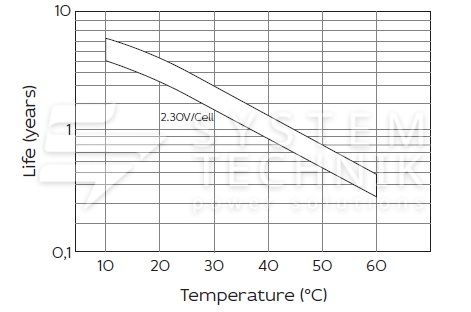 - Срок хранения без подзаряда: 6 мес. при 25°C;