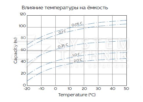 - Срок хранения без подзаряда: 6 мес. при 25°C;