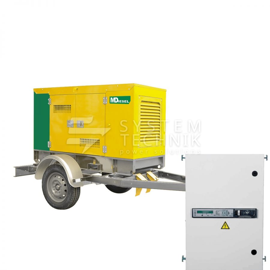 - MitsuDiesel МД ЭД-20-Т400-2РКМ29 в шумозащитном кожухе на шасси с АВР на прицепе