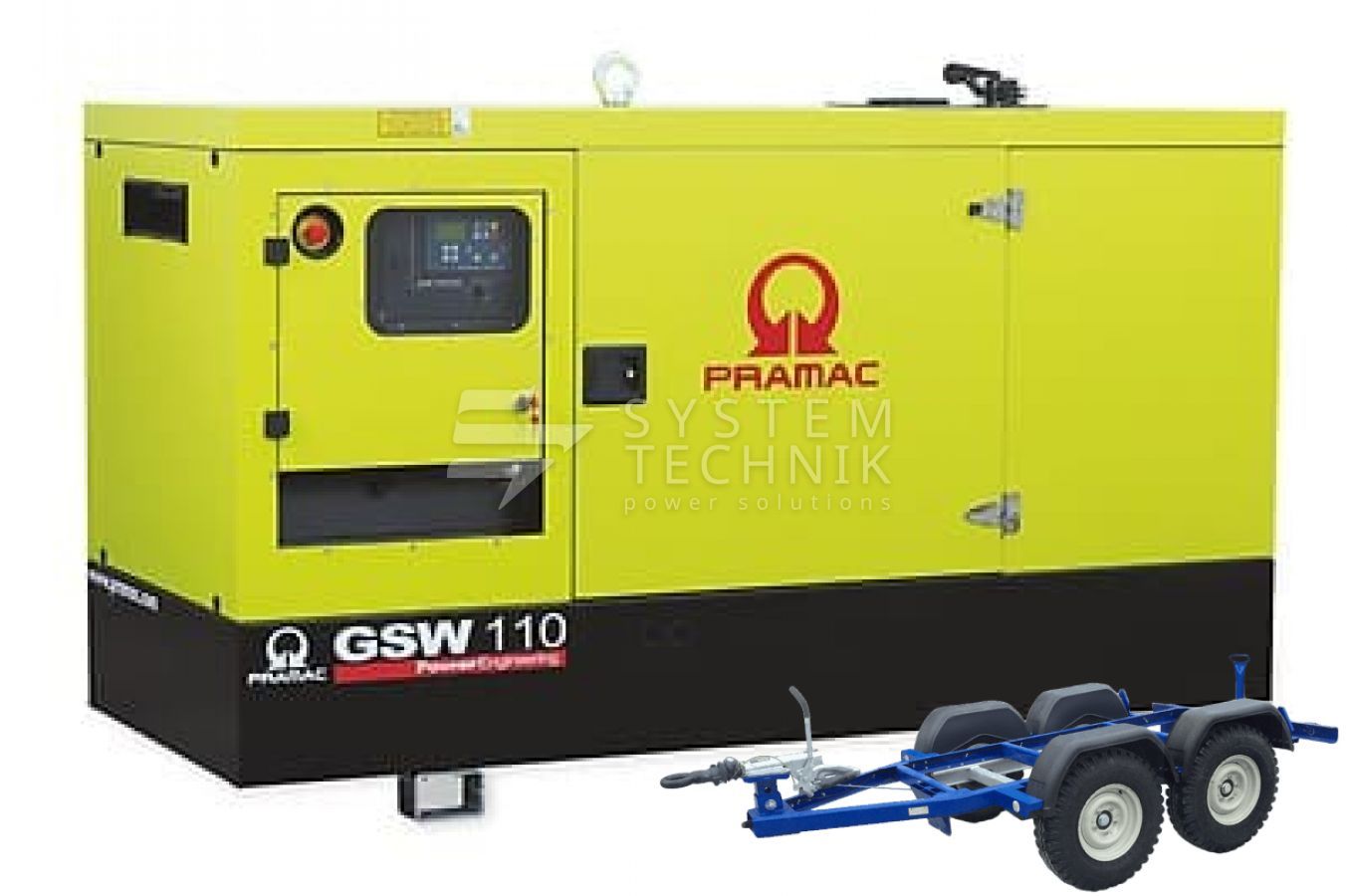 - Дизельный генератор Pramac GSW 110 V 208V В кожухе на прицепе