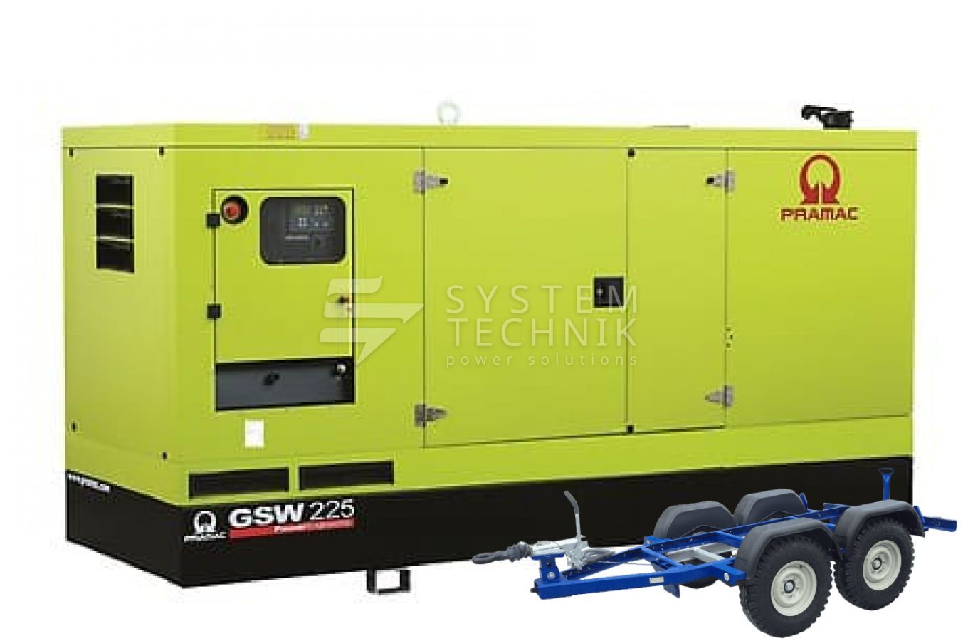 - Дизельный генератор Pramac GSW 225 V 400V В кожухе на прицепе