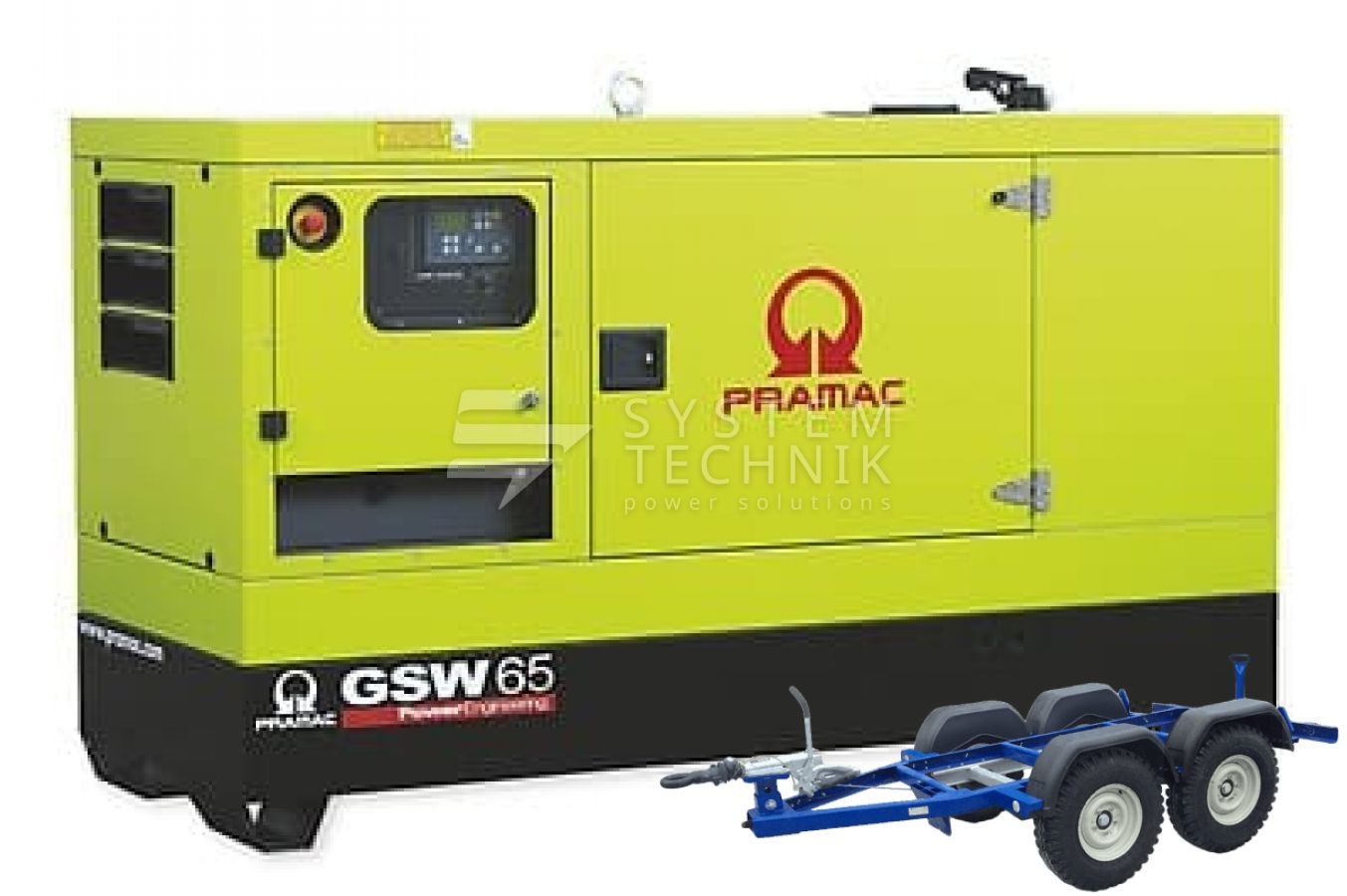 - Дизельный генератор Pramac GSW 67 P 230V 3Ф В кожухе на прицепе
