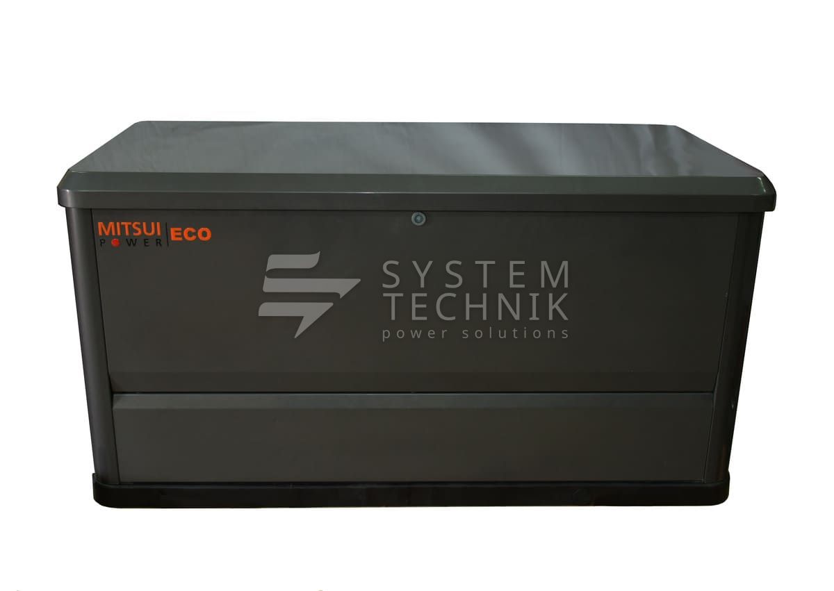 Трехфазная газовая электростанция в шумозащитном кожухе Mitsui Power Eco GM 12000 изготовлена на базе двигателя Mitsui С750 с воздушным охлаждением. Генератор предназначен для организации автономного электроснабжения домов, небольших коммерческих, социальных и бытовых объектов.